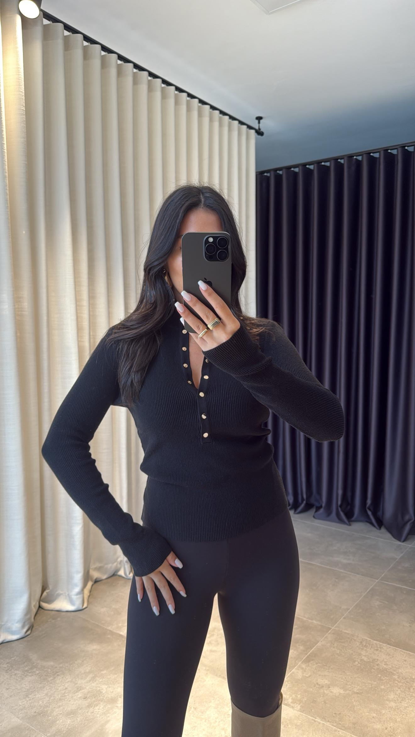 Siyah Droplu Dik Yaka Bluz